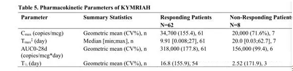 下表5總結了KYMRIAH的藥代動力學參數(shù)