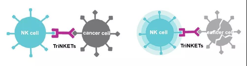 Dragonfly公司開(kāi)發(fā)的腫瘤免疫療法以專有的三特異性NK細(xì)胞銜接蛋白療法(Tri-specific, NK cell Engager Therapies),即TriNKET?技術(shù)為中心,這是一種將自然殺傷(NK)細(xì)胞與癌細(xì)胞表面蛋白質(zhì)相連的結(jié)合機(jī)制。