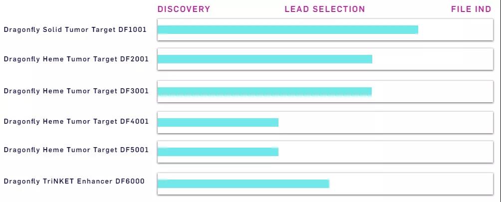 目前,Dragonfly的研發(fā)管線由六個(gè)正在進(jìn)行的臨床前研發(fā)項(xiàng)目組成: